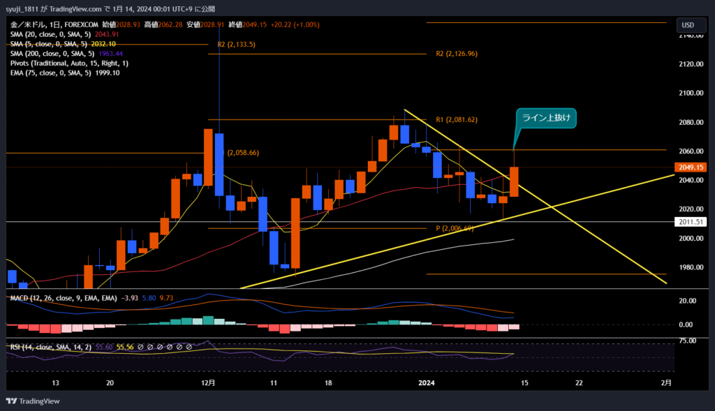 この日は開始から上昇、欧州開始後にトレンドライン上抜け